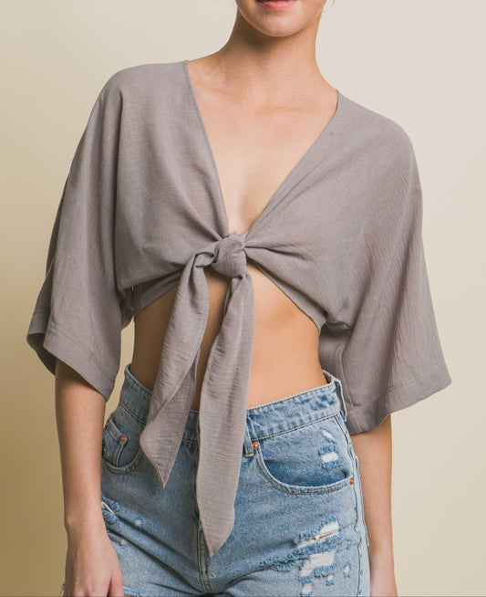 Women's Seamless Ribbon Bow Rhinestone Cropped Tee- LVPSTONE05