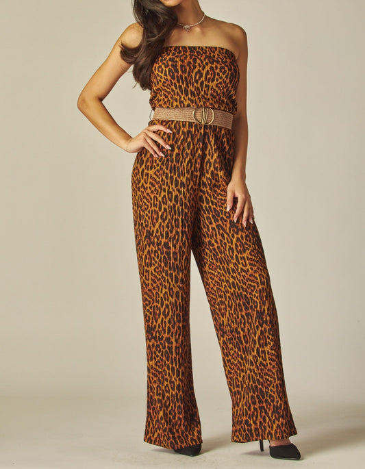 Women's Crinkled Print Strapless Belted Wide Leg Jumpsuit - LVPIRIS5JP
