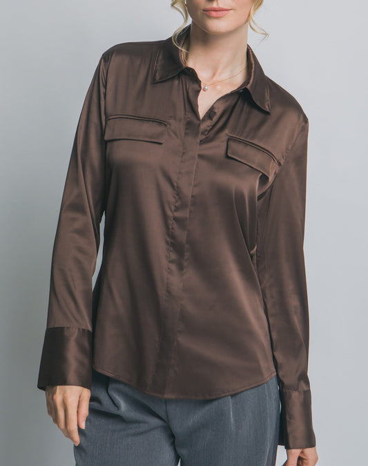 Women's Collared Satin Button-up Shirt - LOV10381TN