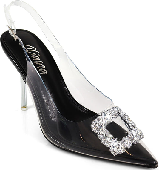 Women's Rhinestone Clear Band Dress Heel- NIKIA244