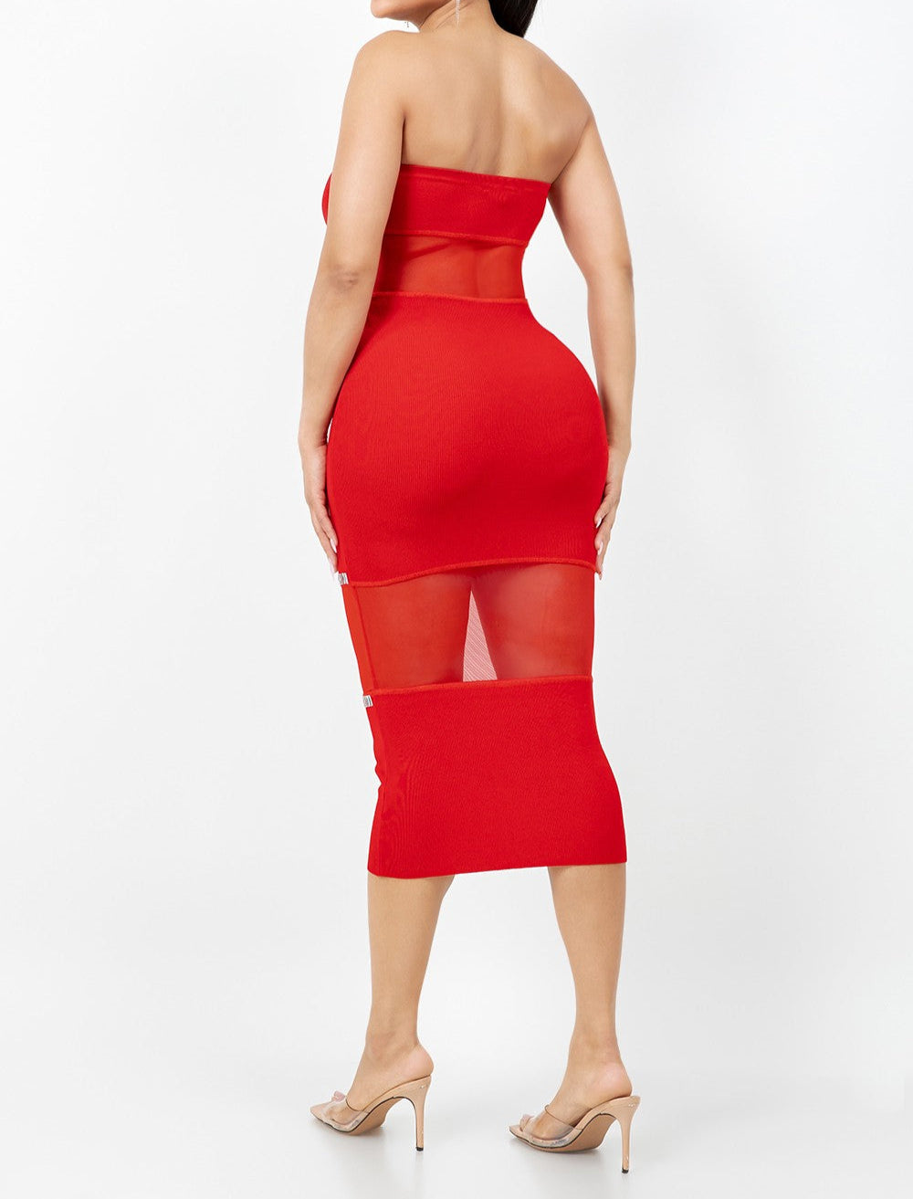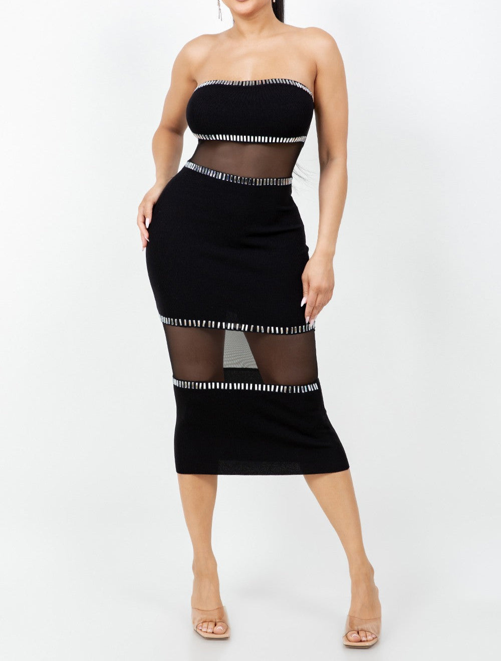 Women's Tube Mesh Midi Dress W/ Rhinestone- HER23401